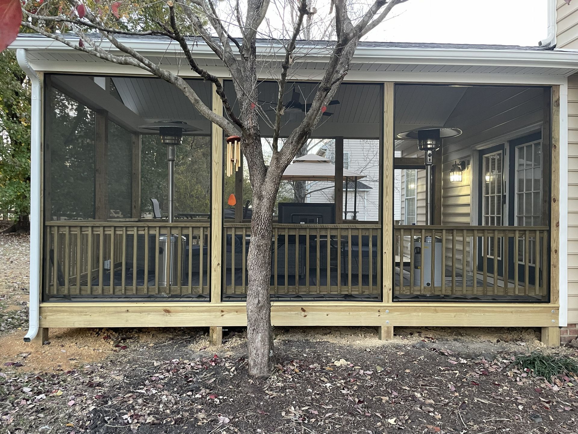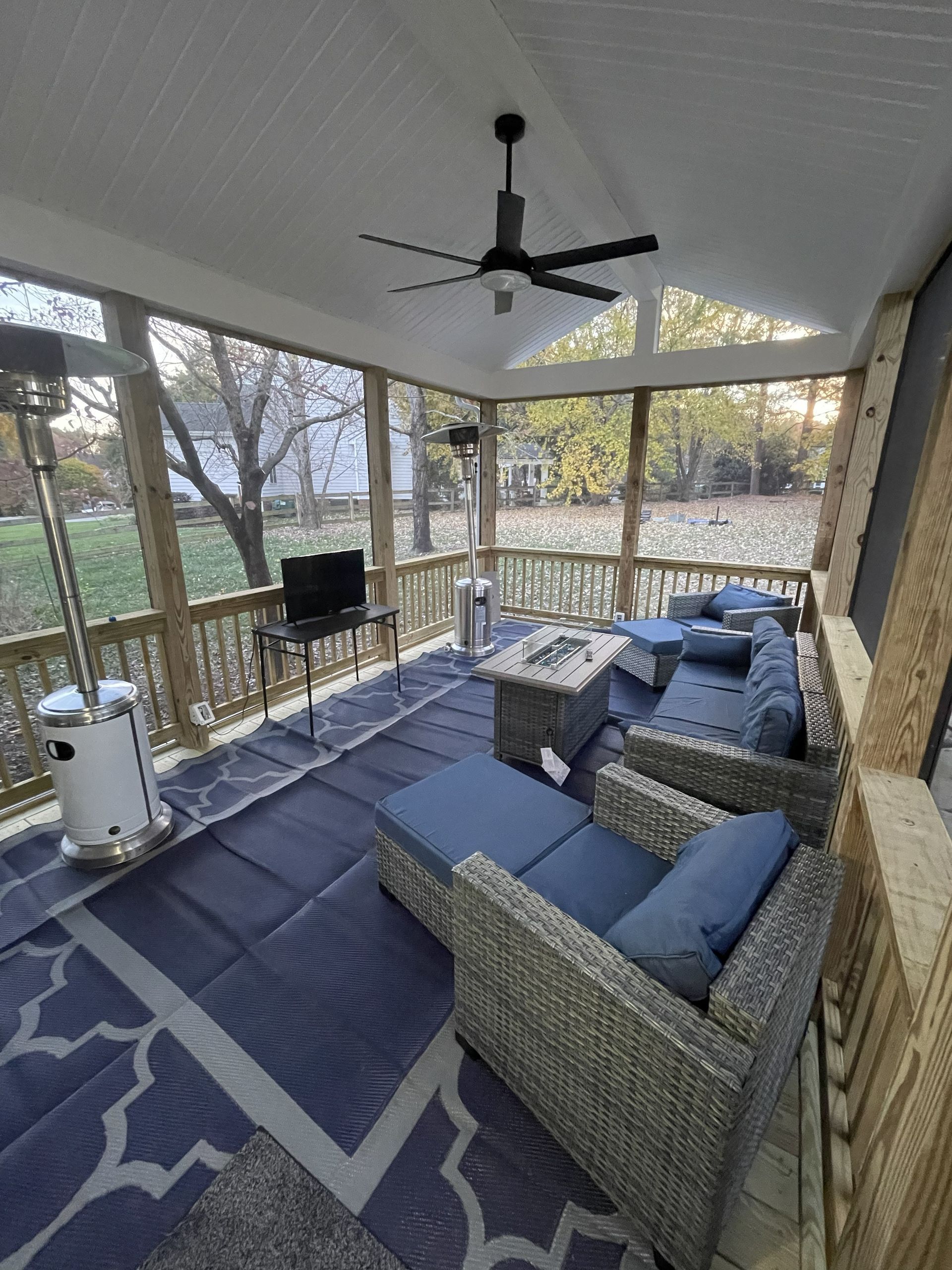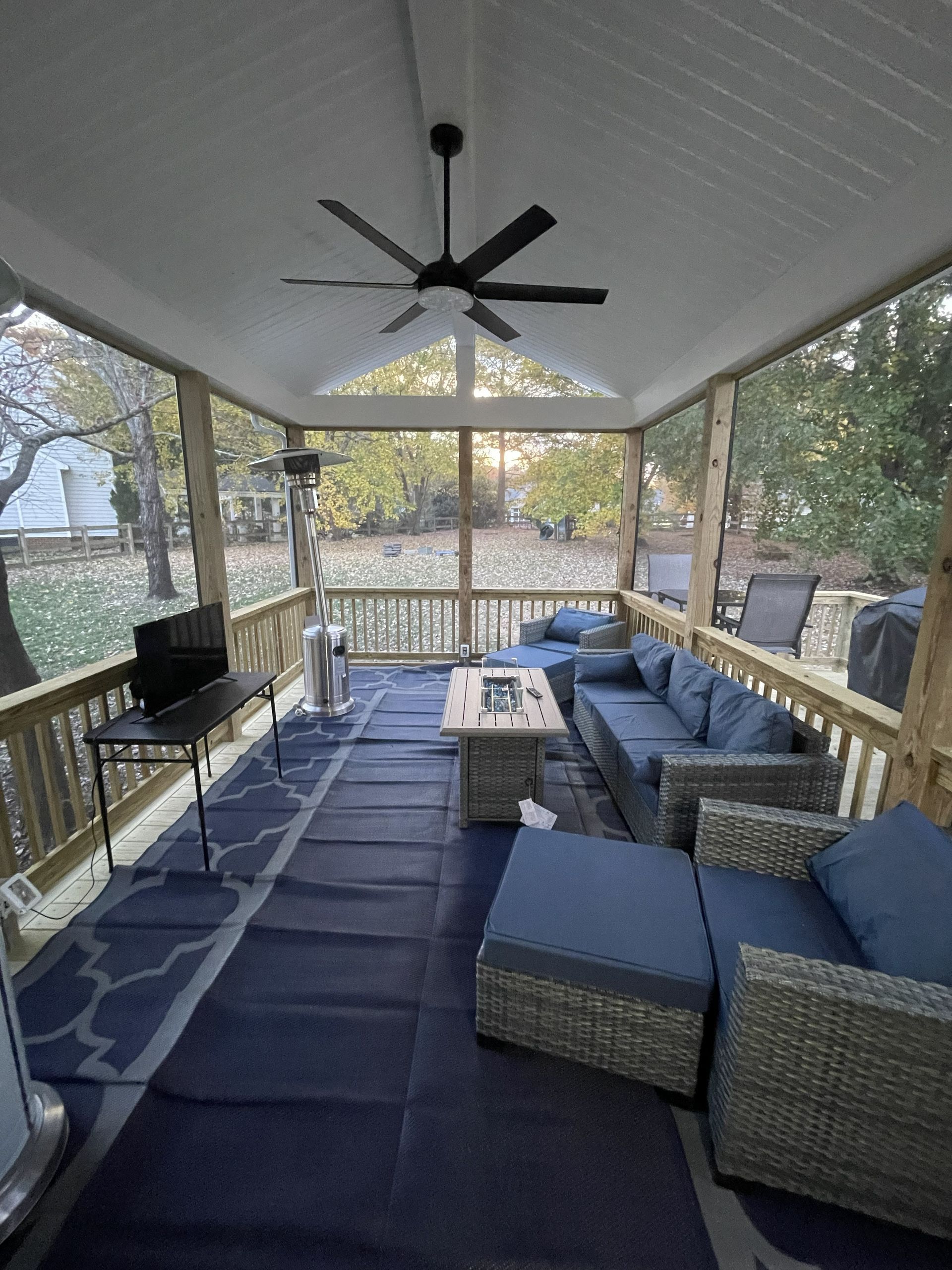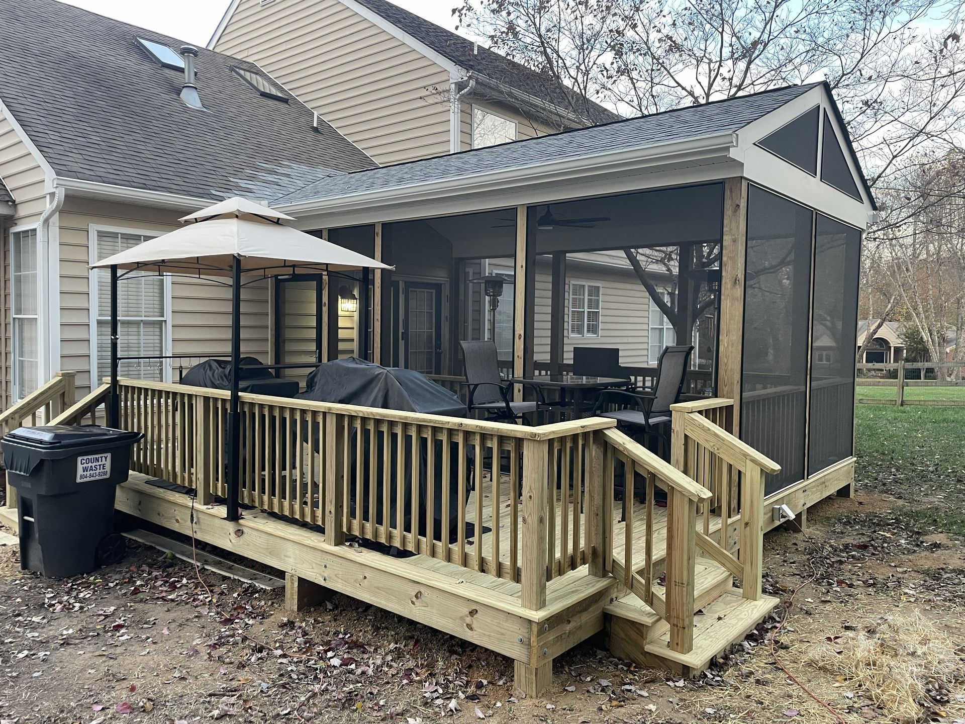 This customer wanted to update their old deck with a new porch and grilling deck. They selected pressure treated wood for the decking and drink rail, offering durability and a classic look. We installed ScreenEze and a Larson storm door along with a vaulted ceiling and an open gable to create a more spacious feel. They selected white vinyl solid soffit for the ceiling and we installed a ceiling fan selected by the customer to complete the space. Interested in upgrading your outdoor.