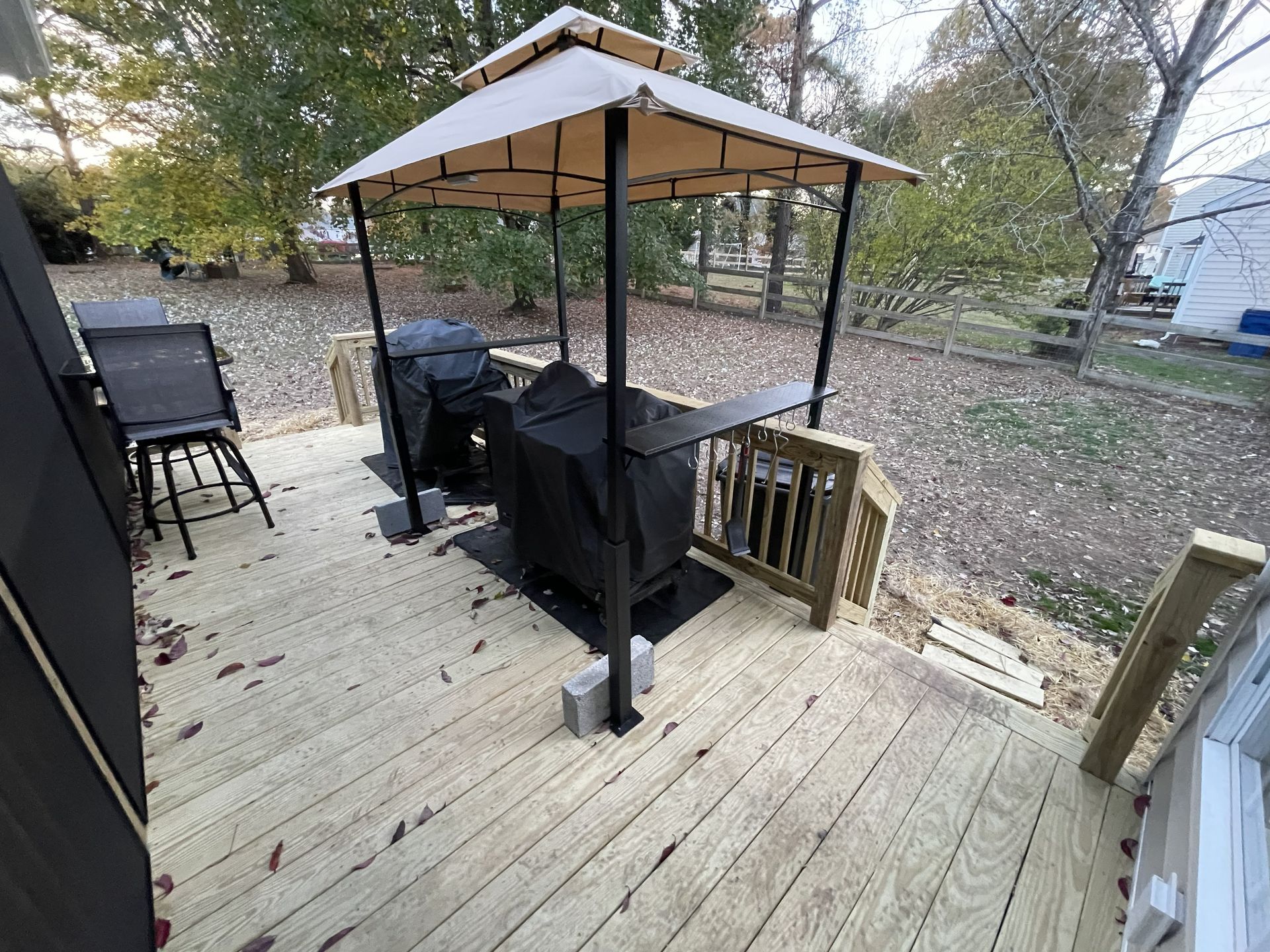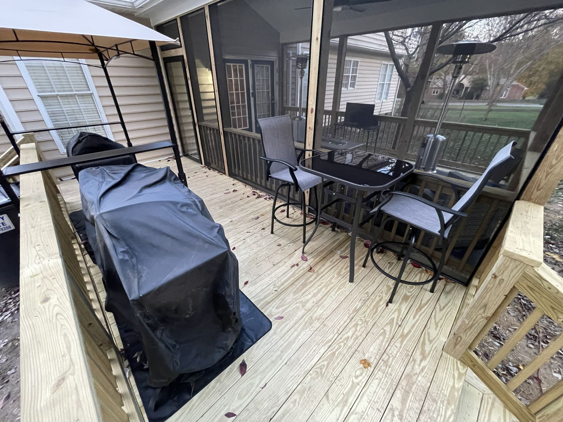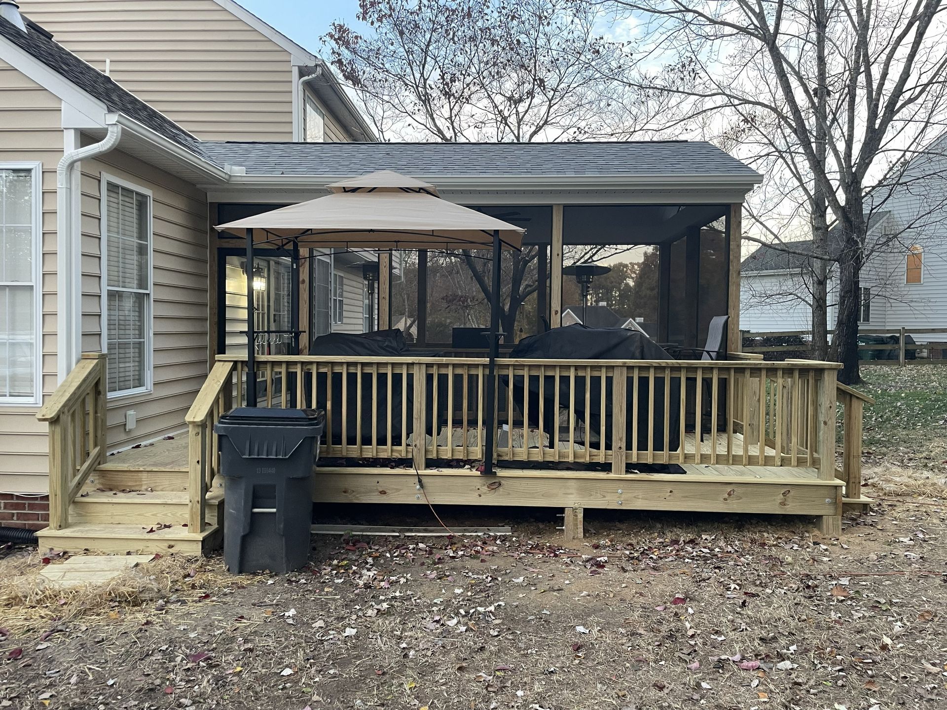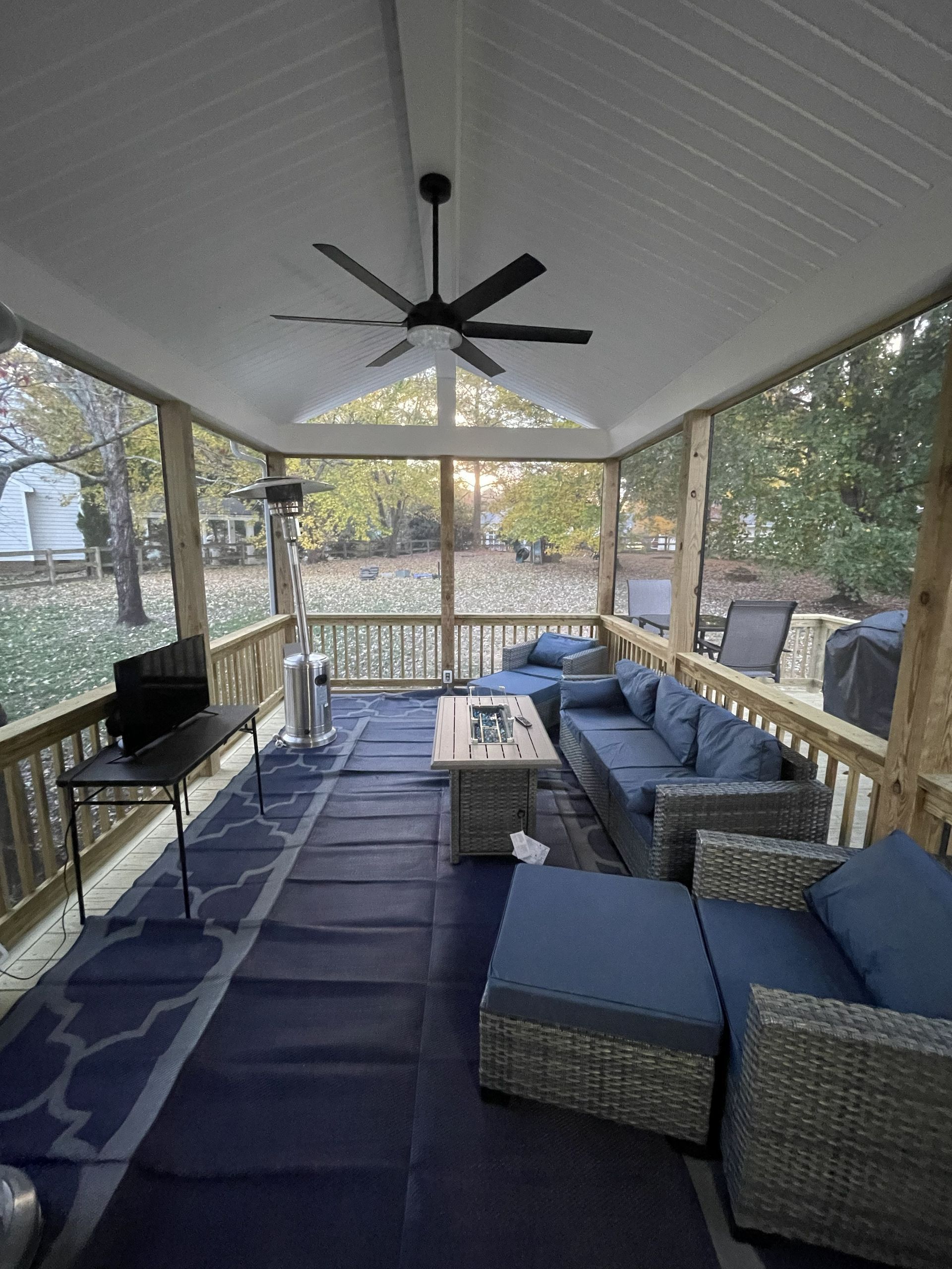 This customer wanted to update their old deck with a new porch and grilling deck. They selected pressure treated wood for the decking and drink rail, offering durability and a classic look. We installed ScreenEze and a Larson storm door along with a vaulted ceiling and an open gable to create a more spacious feel. They selected white vinyl solid soffit for the ceiling and we installed a ceiling fan selected by the customer to complete the space. Interested in upgrading your outdoor.