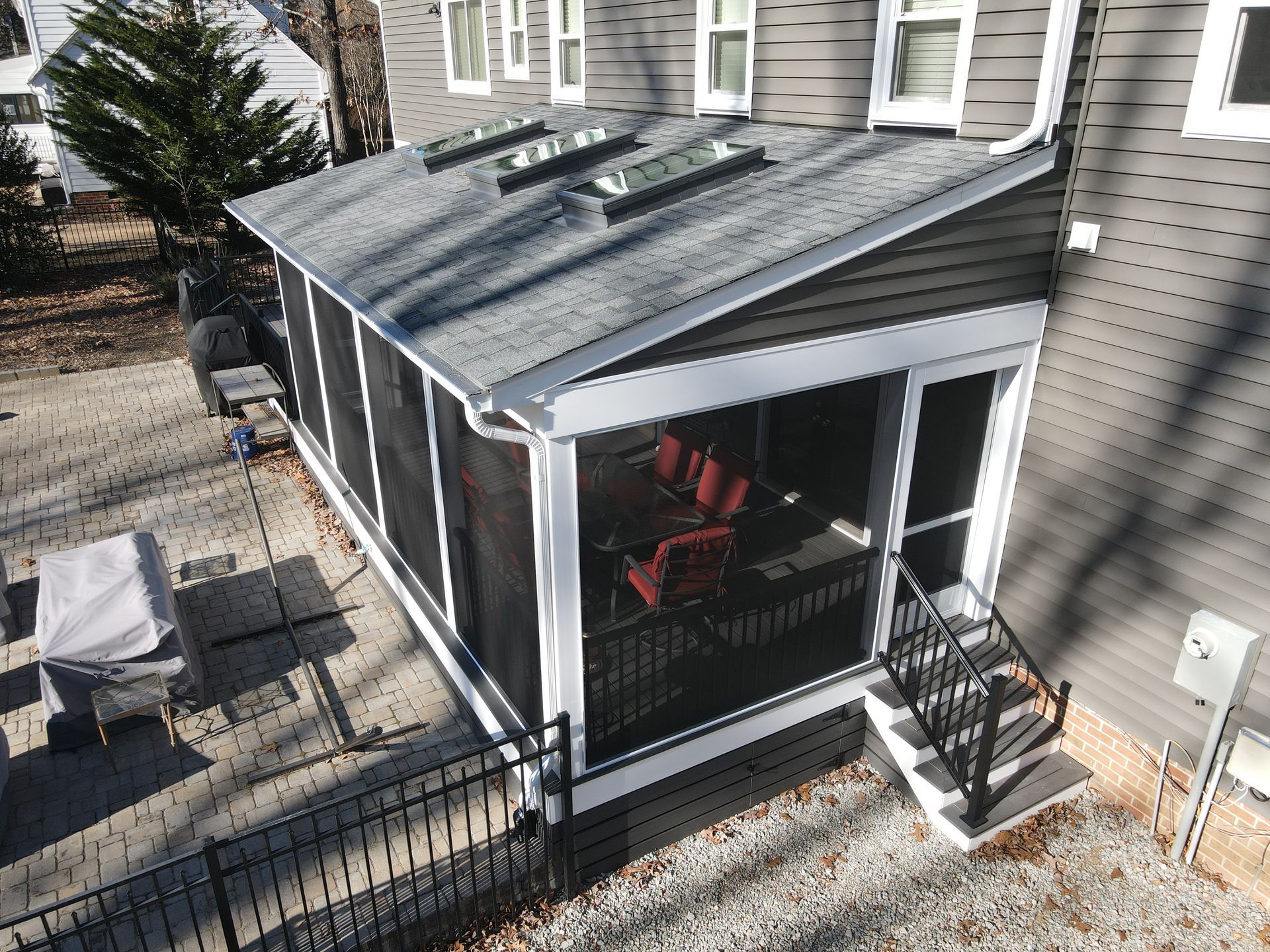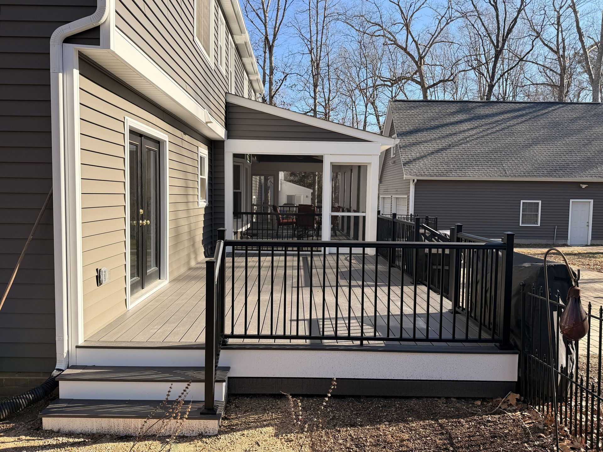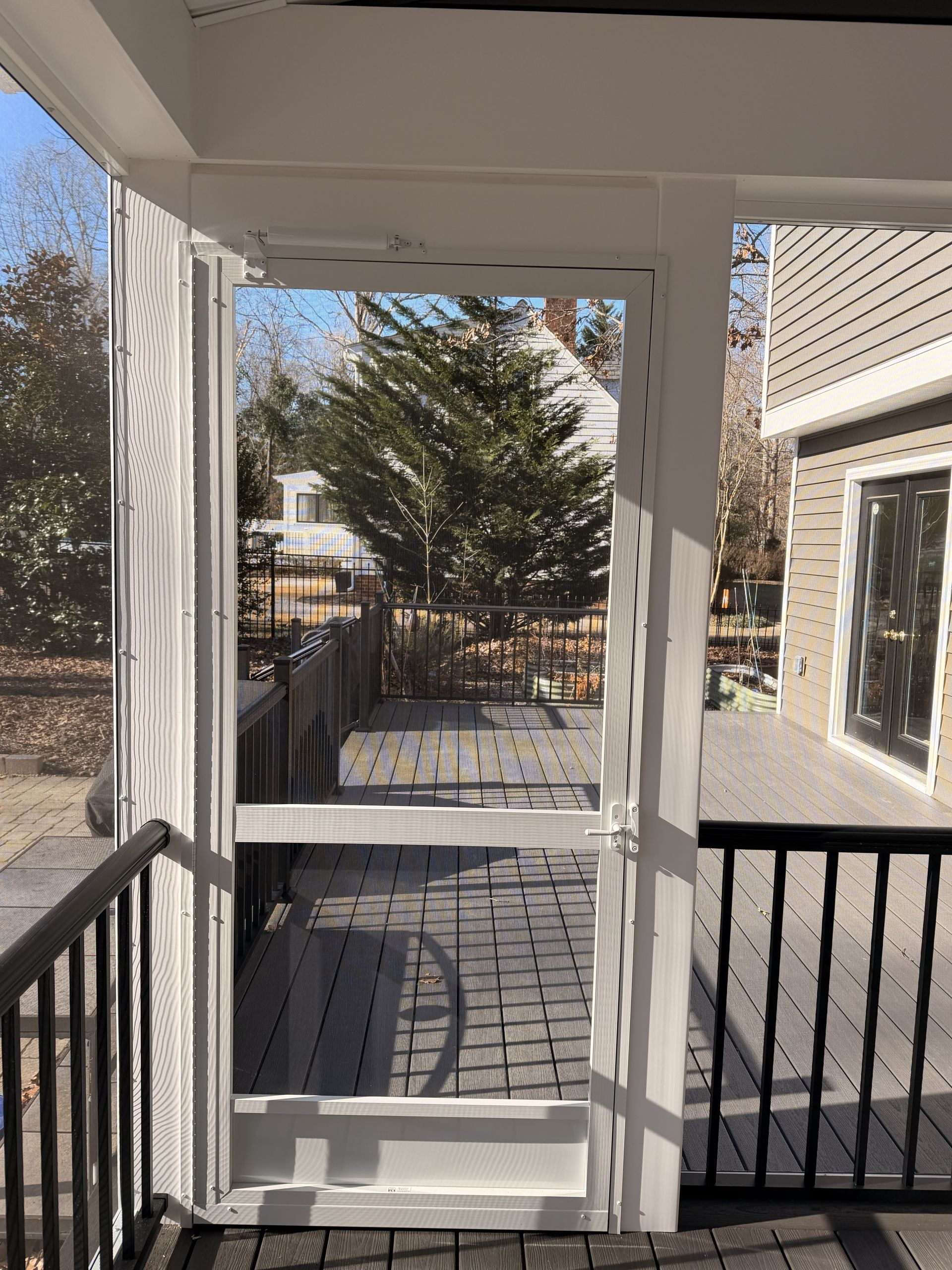 Take a closer look at the details of this screen porch and deck. It was the perfect addition to this customer’s home, complementing the new roof, siding, and front porch upgrade.